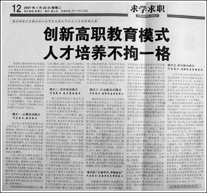 浙江经贸学院电子商务专业针对电子商务专业特点和浙江省区域经济发展现状,经过几年的探索和发展,逐步建立起一条适合电子商务专业教学的培养模式——项目驱动式的人才培养模式。通过项目合作,来调整该专业的定位和培养目标,制定和完善理论教学体系和实践性教学体系,并在项目合作过程中完成教学培养工作。