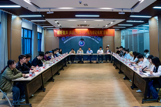学生处结合主题教育,开展“聆听青声 共话发展”——“我与书记有约”主题活动,党委书记劳赐铭向与会学生代表赠送了《平语近人——习近平喜欢的典故》书籍,并与学生面对面深入交流,鼓励经贸青年要扛起作为新时代中国特色社会主义事业的“接班人”和“建设者”的使命担当,以时不我待的紧迫感和舍我其谁的责任感,学思践悟党的二十大精神。
