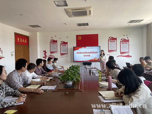 马院党总支书记、院长俞校明强调要高度重视“三会一课”、主题党日活动等工作,夯实基层党建基础,提高党建活力,高质量高标准推进主题教育,做到形式更创新、主题更鲜明、程序更规范。马院党总支副书记高峰传达了省教育厅师德师风典型案例。思想道德与法治教研室党支部书记周晓晓围绕“一学三服务”党建工作品牌,从“七个有力”出发分享了样板支部建设成果。马院主题党日活动方案设计大赛一等奖获得者韩玉洁分享了以校外思政实践基地为载体所设计的主题党日活动方案。